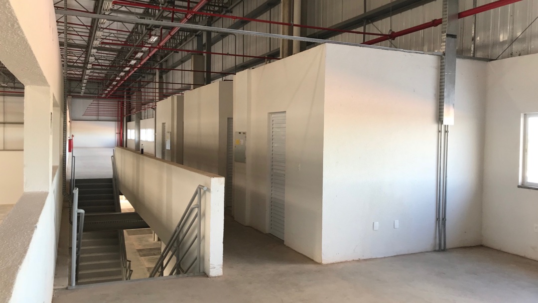 - Mezanino amplo com WC e copa e vista estratégica para o galpão com capacidade de 400 kg/m²