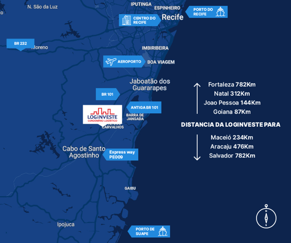 O novo condomínio da Vasconcelos Costa tem como diferencial competitivo a sua excelente localização estratégica situado às margens da BR-101 Sul e da Av. Miguel Arraes. Está a 15 km do Porto Logístico de Suape e próximo às novas indústrias envolventes, a 15 km do Aeroporto dos Guararapes, com fácil acesso à Reserva do Paiva e também às futuras vias de acesso como a Express Way e Arco Viário.